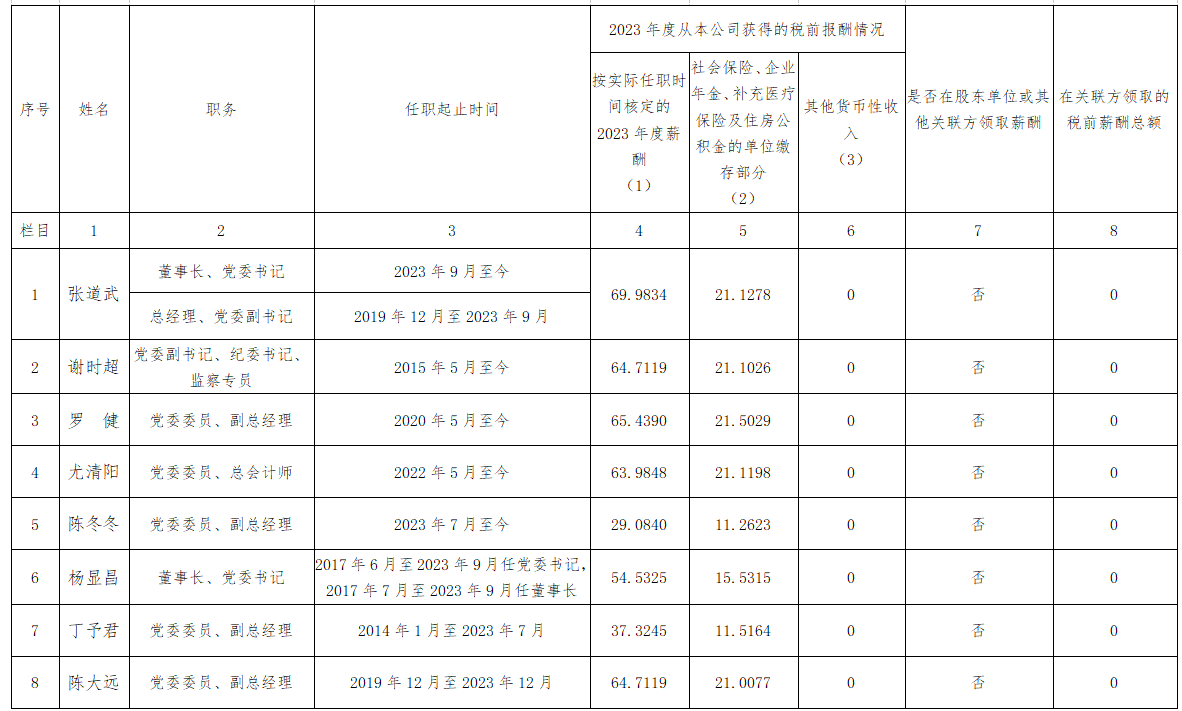 备注:上表披露信息为我公司企业负责人2023年度全部应发税前薪酬(不含2023年发放的以往年度薪酬)。