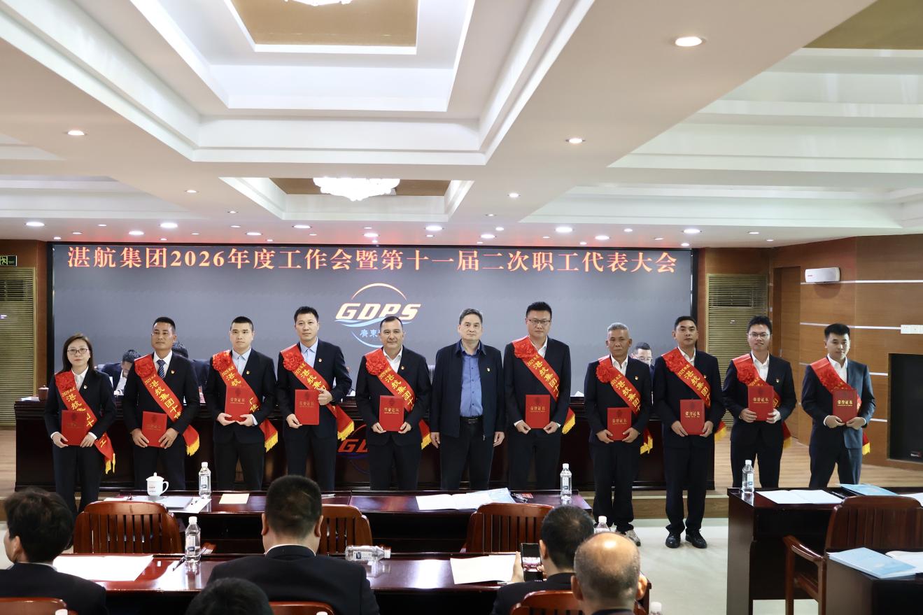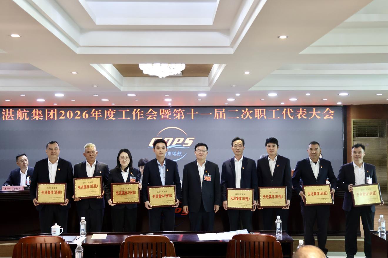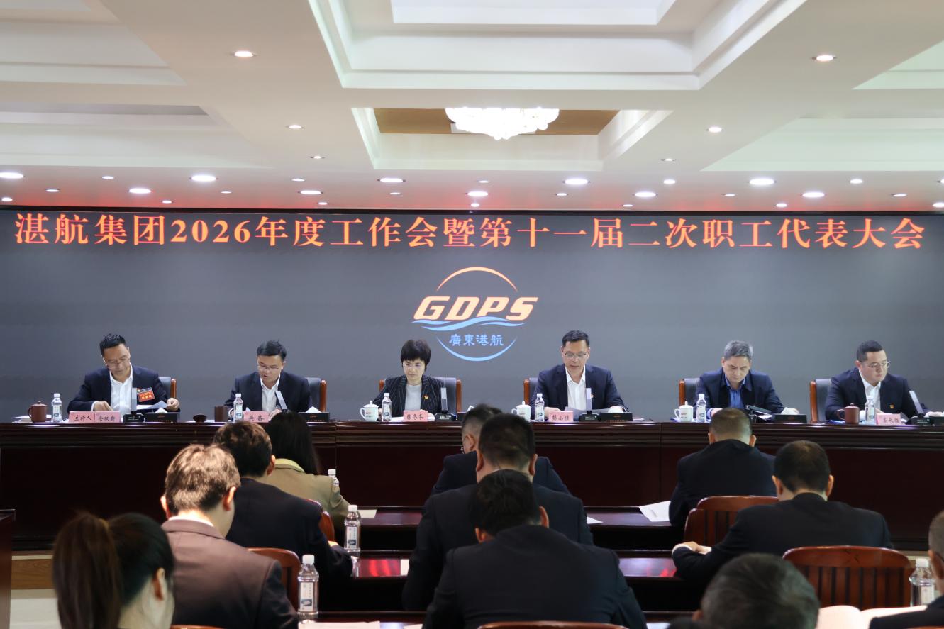 1月28日下午,湛航集团召开2026年度工作会暨第十一届二次职代会议。省港航集团党委委员、副总经理陈冬冬,湛江市国资委党委书记、主任彭小强出席会议并讲话。集团党委副书记、副董事长、总经理吴奋作2026年度工作报告。集团党委委员、副总经理余权新主持会议。